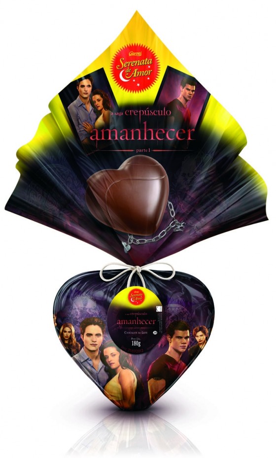 - Para os fãs da Saga Crepúsculo (como eu), a Garoto lançou o ovo da saga. E o melhor de tudo é que ele vem com a pulseira da Bella.